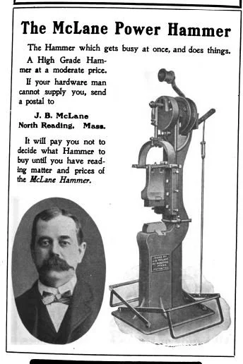 McLane was also an innovator, obtaining four patents for machines he developed for his wagon factory: Axle Cutter (1881); Metal-Punching Machine (1894); Metal-Shearing Machine (1896); and Power Hammer (1902). In 1911, McLane sold the rights to the Power Hammer to Champion Blower and Forge Company, which continued to produce the Power Hammer until 1955.